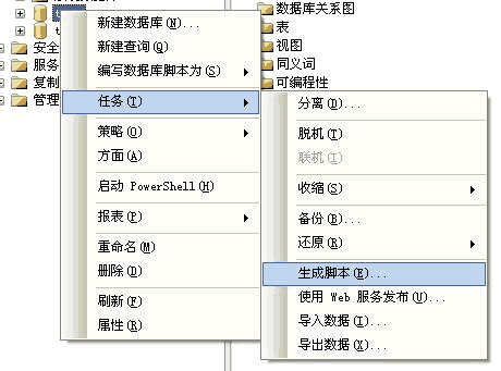 右键-->任务-->生成脚本。